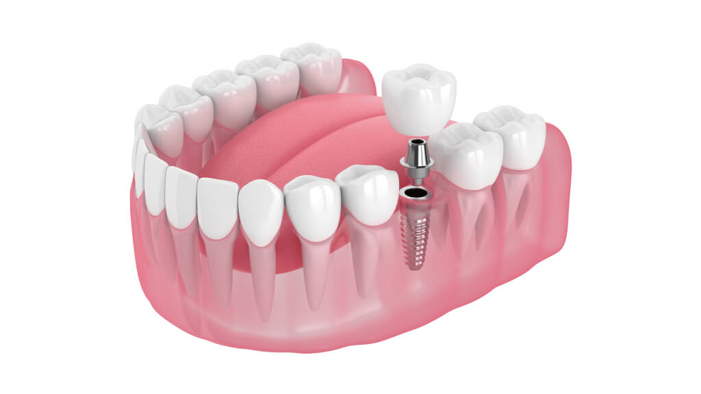 インプラント治療は、人工の歯根(インプラント体)を顎の骨に埋め込み、その上に人工歯を装着する治療方法です。