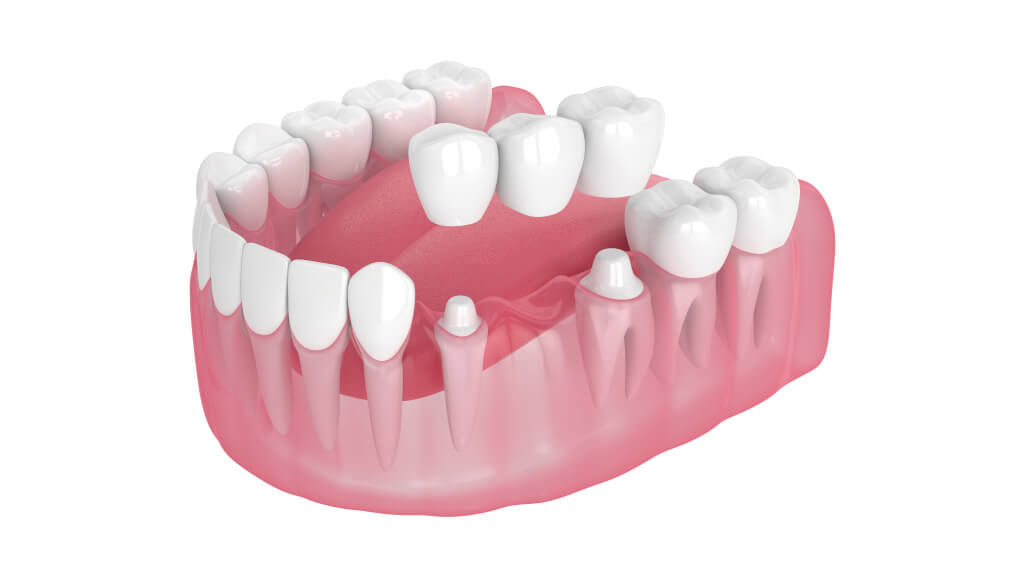 ブリッジは、抜けた部分の両隣の歯を支えにして人工歯を固定する治療方法です。保険の範囲で選択できることも多く、比較的費用を抑えやすい点はメリットといえるでしょう。
